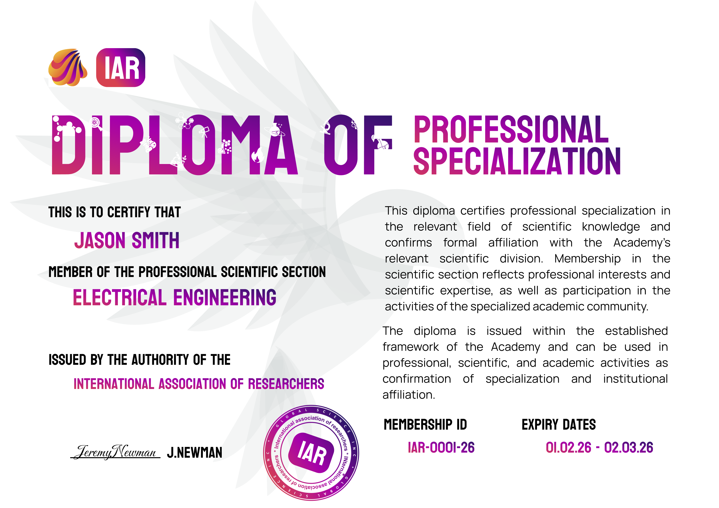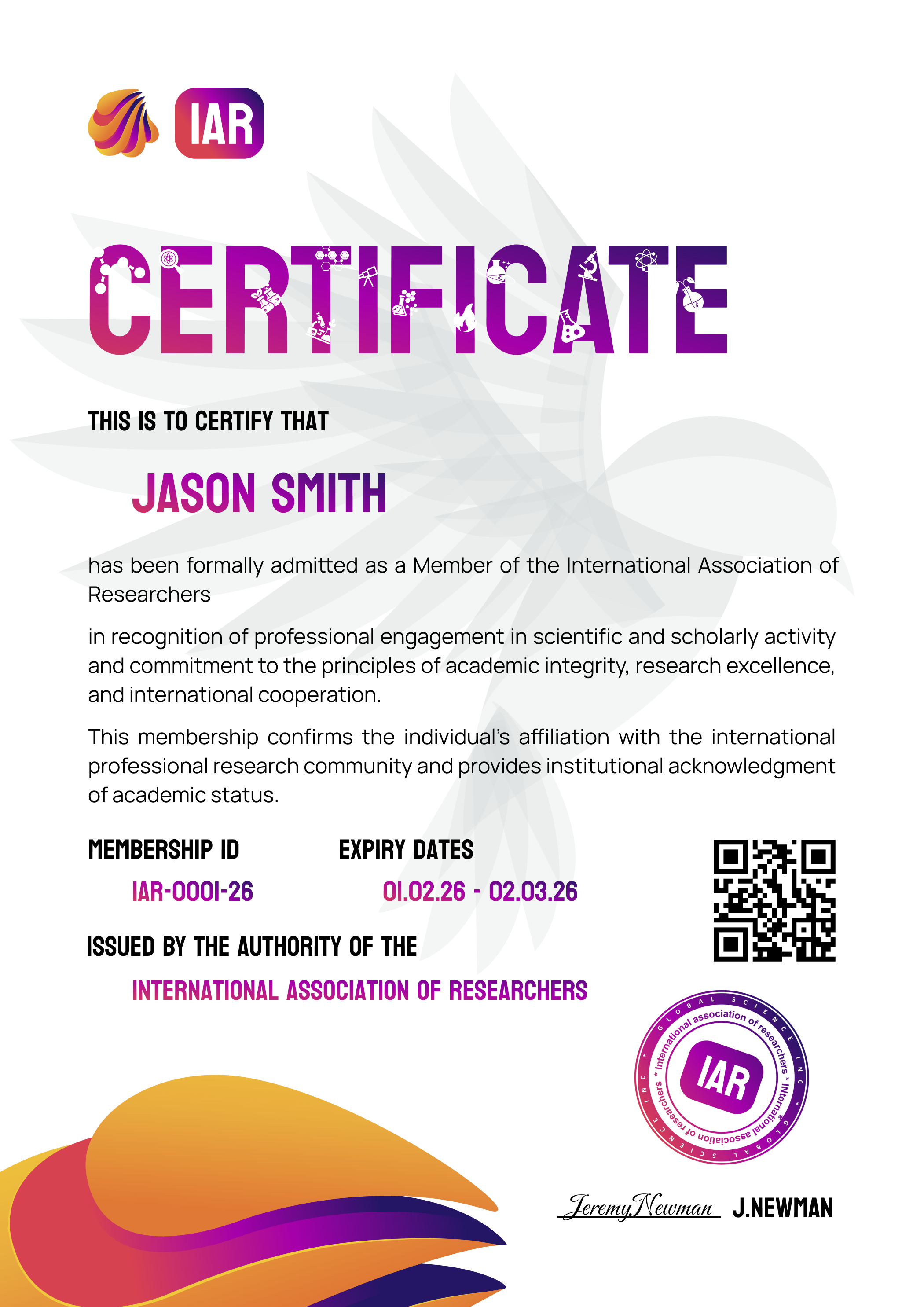 IAR membership is more than just a document; it is confirmation of your membership in a professional community that values transparency and openness. IAR does not replace traditional universities or state academies of sciences. We do not award diplomas or degrees. Our goal is to complement your professional path with an international affiliation that confirms your activity and engagement in the scientific community.